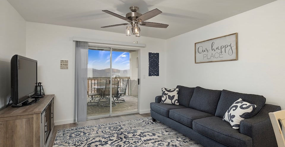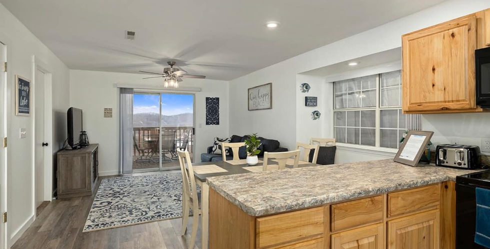 This cute walk in condo has everything you need to enjoy your stay near Table Rock Lake and Silver Dollar City! It has a fully stocked kitchen, WiFi, cable and a big deck for enjoying partial lake views and sunsets over the Ozark Mountains.