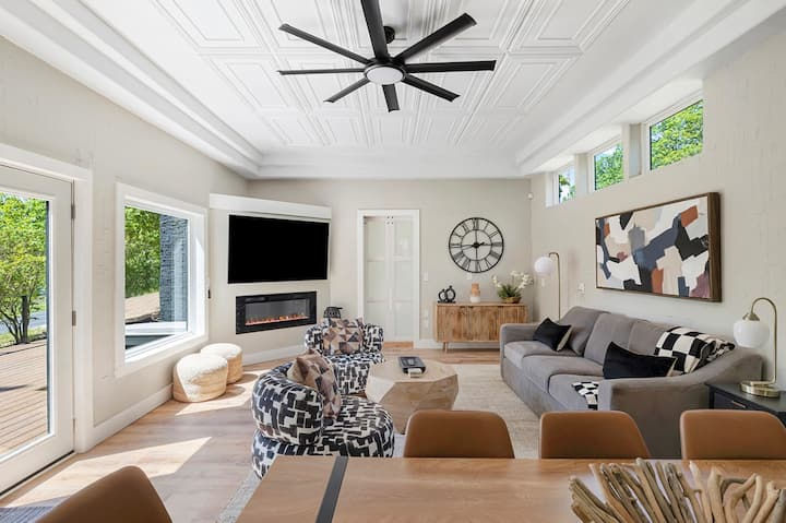 This completely remodeled home has been decorated to reflect its own style. There are 3 bedrooms and a sofa bed, 2 bathrooms, a stocked kitchen, a smaller room with a couple pieces of workout equipment, and a beautiful deck with furniture for enjoying the Ozark’s sunsets. You can also have fun playing fooseball and arcade games. After a fun day at the lake, come back to the home and relax in the private hot tub to unwind.