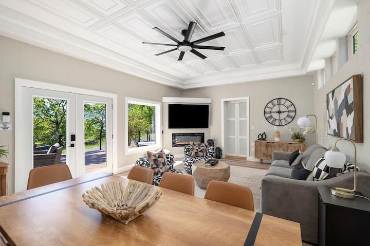 Looking for a stylish yet cozy and peaceful place, look no further. This beautifully decorated and remodeled home has a style all its own. This stunning home is surrounded by lush green trees and a partial view of Table Rock Lake! This is a perfect get away for families or couples who just want a break from it all. This home is located 1.7 miles from the city of Shell knob where there are stores, restaurants and Marinas for boating!