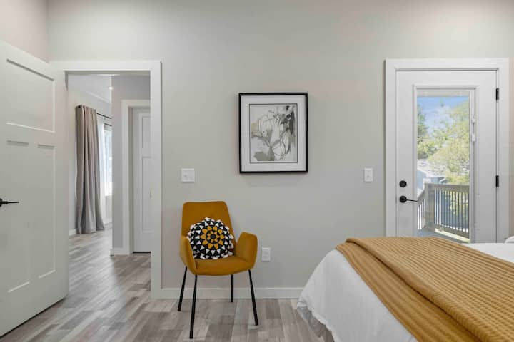 Enter this very contemporary and roomy home. There is one bedroom with a full size bed and twin trundle,, the 2nd bedroom has a queen bed, and 3rd bedroom has a king bed with large en-suite bathroom.