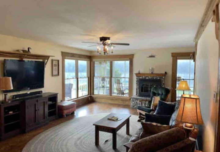 Enjoy this beautiful view and lake life on the wrap around deck, large outdoor firepit or down on the private dock!! It’s the perfect property for several families with kids to stay! Want to enjoy the lake? Our private boat dock is a 300 feet and gentle walk from the back porch, where you can enjoy swimming off our 12x60 swim platform with ladder to get in and out of the water quickly and easily. Included with the use of the private boat dock is paddle boards, canoe, kayak, swim noodles, life jackets and lake towels. One of our favorite amenities about this house is the downstairs kids cabin play area with their own smart television and card table with plenty of board games. This will allow plenty of adult time on the back porch while unwinding from your fun day of adventure.