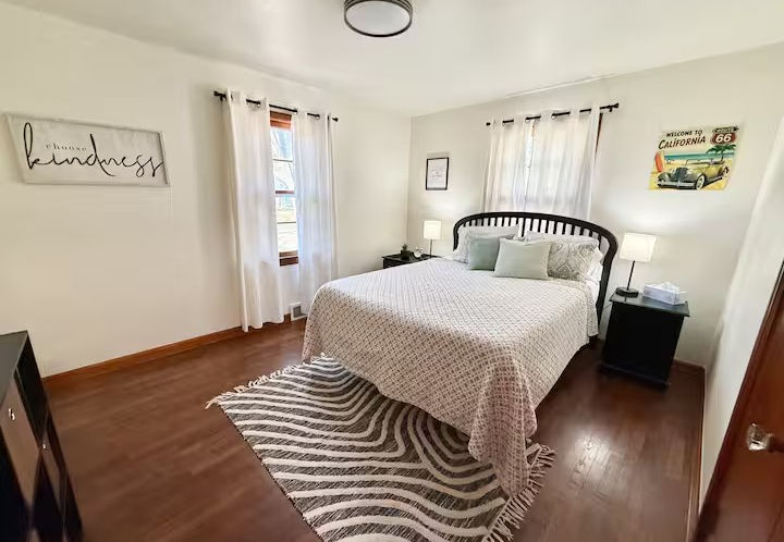 Start your mornings relaxing on the inviting front porch, where you can sip coffee while watching the quiet neighborhood come to life. Inside, the home offers comfortable accommodations with three cozy bedrooms, thoughtfully designed spaces, and a welcoming atmosphere that makes guests feel right at home. The historical signs of Route 66 adorn this home throughout.