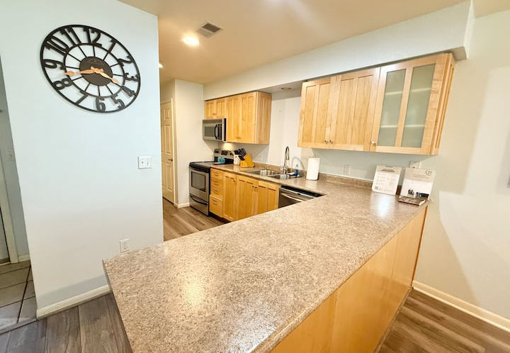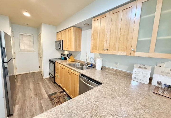Kitchen: A space for cooking meals that includes at least a refrigerator, oven, and stovetop