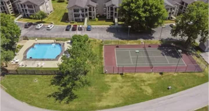 This Holiday Hills Resort in Branson, MO is a vacation destination featuring not just 5 community swimming pools and hot tub, but also an Arcade Room, tennis courts, a fitness center, a gift shop and restaurant, it has a beautiful 18 hole golf course (extra fee) with a pro shop. Leaving the resort may be the hardest thing you have to do!! The resort is gated and is 5 minutes north of the beautiful Branson Landing and Lake Taneycomo.